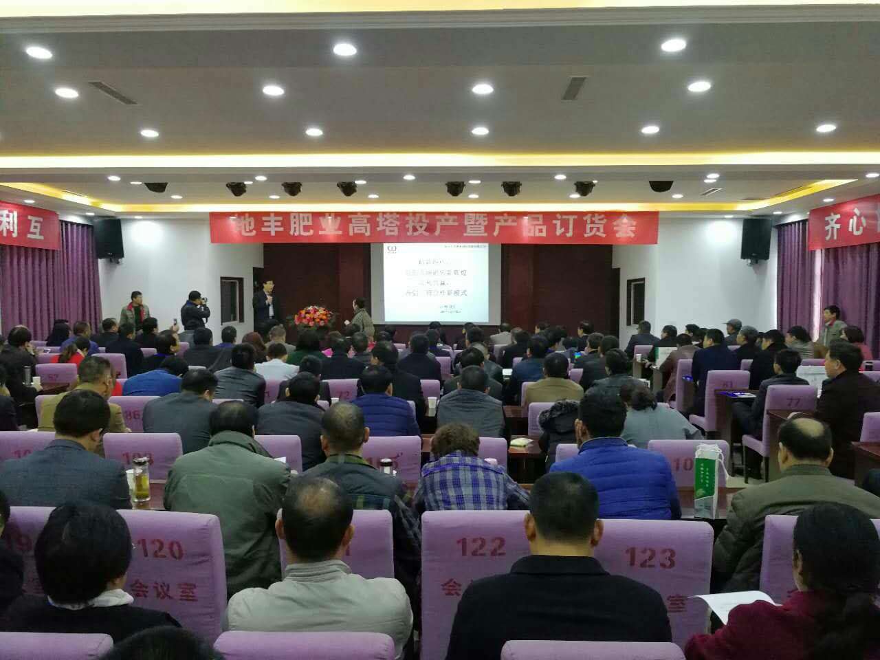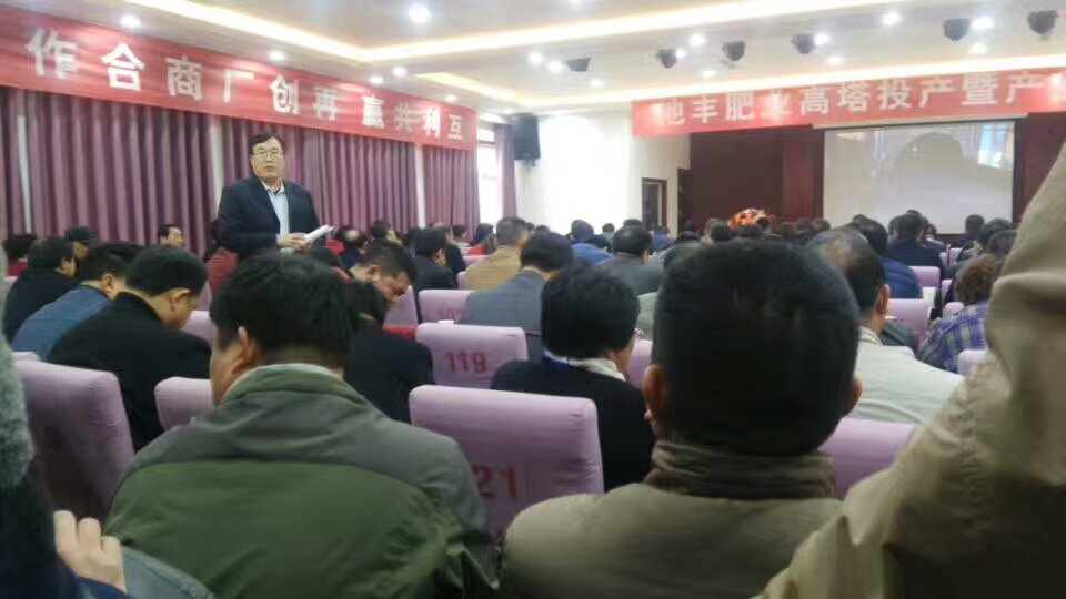參觀高塔造粒項(xiàng)目后,在焦作市地豐肥業(yè)有限公司三樓多媒體會(huì)議室舉行高塔產(chǎn)品訂貨會(huì),大家濟(jì)濟(jì)一堂,共話營(yíng)銷新模式,齊心協(xié)力實(shí)現(xiàn)互利共贏新合作。