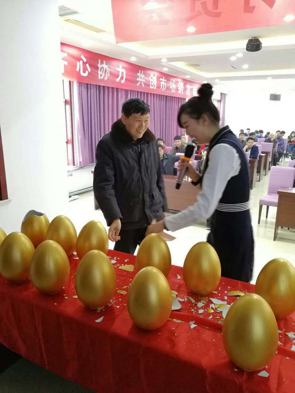 砸金蛋、搶元寶,公司退出一系列優(yōu)惠活動(dòng),各經(jīng)銷商看了心動(dòng)不已,都積極踴躍參與進(jìn)搶購(gòu)高塔產(chǎn)品活動(dòng)中,大家自覺排隊(duì)簽約,場(chǎng)面火爆不已......